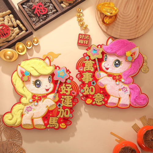 Chinese New Year Cute Horse Door Decor Set | 好运加马 Lucky Zodiac Wall Decals (2pcs)
